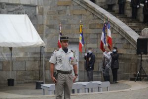 Je me réjouis de la participation de jeunes à cette journée particulière, et notamment des jeunes du Service National Universel. Je les remercie de leur engagement. Il s’agit d’un acte de citoyenneté mais aussi d’un véritable engagement républicain. C’est le sens de ce beau projet qu’est le Service National Universel. Ce grand dessein républicain pour la France du XXIe siècle doit être un creuset pour le partage des valeurs de la République. C’est un temps d’ ouverture, d’imprégnation, de partage, de solidarité. Les volontaires que je vois devant moi en sont la meilleure illustration. Cette année, la préfiguration du Service National Universel a été – évidemment – perturbée par la crise sanitaire. La première phase dit «phase de cohésion» n’a pu se dérouler. Aussi, je veux féliciter les lycéens qui ont participer à la deuxième phase dite de «Missions d’Intérêt Général», au sein de l’ONAC-VG du Morbihan. Enaïs, Eloïse Léane, Awena, Julien, présents aujourd’hui, ont ainsi appris à devenir porte-drapeaux, une tâche hautement symbolique, une fonction précieuse, une responsabilité éminente. Ils sont prêts à œuvrer avec leurs ainés et à les suppléer. Merci et bravo à eux! Notre société a besoin d’une jeunesse qui s’engage pour l’intérêt général, qui adhère aux valeurs républicaines, d’une jeunesse attachée à la République. Nous avons besoin d’une jeunesseq ui, tout en portant la mémoire de ses ancêtres, soit remplie d’optimisme et d’espérance pour l’avenir.