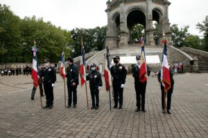 ![]() Le dépôt de gerbe devant l’ossuaire de 1870 |