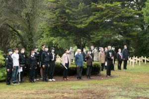 Le dispositif militaire était constitué par la musique des transmissions de la région terre nord-ouest et du 3e RIMA avec le colonel Eric TALLEAU commandant le régiment, le drapeau et sa garde et une compagnie d’honneur. 80 drapeaux représentaient les associations dont Jo LE ROL notre porte drapeau.