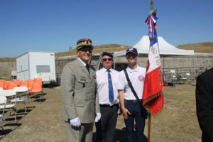 Un volontaire du SNU a porté le drapeau du Souvenir français départemental içi accompagné par Didier Rose et André Le VAILLANT
