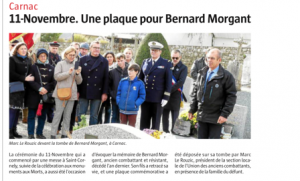 A l’issue de la cérémonie Marc LE ROUZIC  président du comité d’entente de Carnac et président de l’UNC a déposé une plaque sur la tombe de Bernard MORGANT ancien combattant et résistant