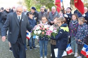 Le dépôt de gerbes avec monsieur le Maire Jean-Loîc BONNEMAINS et les enfants