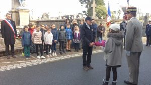La cérémonie s’est ensuite poursuivie par la lecture du poème « le champ d’honneur » choisi par les enfants avant d’entonner avec toute l’assistance et le chœur dirigé par M. THOMAS, une très belle Marseillaise.