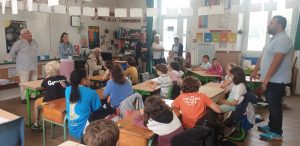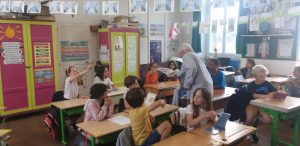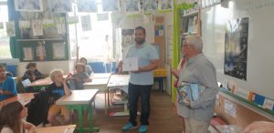 En présence de madame Stéphanie DOYEN , maire de Saint Pierre Quiberon, Michel Fourniol accompagné de Marie Chantal CARLIER, d’André et Sylviane LE VAILLANT, de JO LE BOURGES, délégué du comité pour la commune, a remis les prix constitués de bandes dessinées abordant les différents aspects de la guerre et s’adressant aux enfants. Ces livres viendront compléter la bibliothèque de la classe. A l’issue, les enfants se sont retrouvés autour d’un goûter.