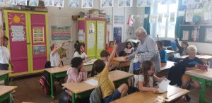 La classe de CM1/CM2 de l’école Saint Joseph de Kéraude avec leur professeur des écoles et directeur Brieuc Robet a participé pour la seconde année consécutive au concours scolaire. Précédent la remise des livres et le goûter, monsieur ROBET ont expliqué la démarche avec la conduite d’un interview par la correspondante du journal Le Télégramme, puis le rôle de chaque enfant dans la conduite de l’interview de JO LE BOUGES dont le grand père Mort Pour La France a été choisi par les enfants, la recherche d’info dans les familles sur leurs ancêtres et enfin la réalisation du document.