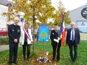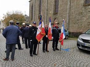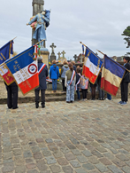 Parmi les porte-drapeaux, le jeune Nolan porte la réplique du drapeau du Souvenir Français obtenu lors du concours scolaire 2022 par l’école Sainte- Anne de Caudan. Présent aussi, Pascal Scoth, porte-drapeau et délégué du comité pour la commune de Caudan.