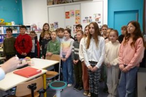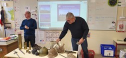 Mardi 5 et jeudi 7, Didier Roze, président, et Patrick Talhouët, délégué communal pour Camors, sont intervenus dans trois classes de CM des écoles publiques Joseph Rollo de Pluvigner et de la Petite Colline de Brandivy pour évoquer la Grande Guerre et expliquer pourquoi le 11 novembre est férié, en incitant les enfants à être présents aux cérémonies communales. La présentation de reliques de la guerre a contribué à soutenir l’attention des élèves et à fixer le souvenir de ce terrible conflit.