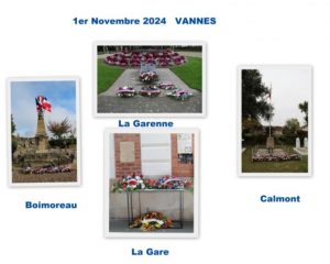 Le 1° novembre, lors de trois brèves cérémonies devant les monuments aux morts des carrés militaires de Calmont et Boismoreau ainsi qu’au mémorial de la Garenne, la municipalité de Vannes et le Souvenir Français ont rendu hommage aux morts pour la France.