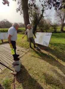 Les travaux d‘entretien préalables à la commémoration du 8 juin par des artisans (peintre lettreur, menuisiers, paysagiste) se poursuivent, le 1° avril un commando du bureau de la DG56 y participait aussi :