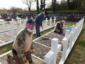 Avec le printemps, les équipes de Jacques SERRE, chaque jeudi, ont repris pelles et râteaux pour entretenir les 502 tombes des carrés militaires des cimetières de Vannes.