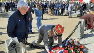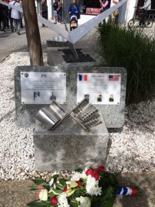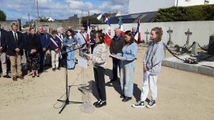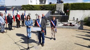 La deuxième partie de la cérémonie se déroule, rue de la libération, devant la stèle dédiée aux soldats américains morts lors des combats de la libération d’Etel.