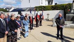 La commémoration de la victoire du 08 mai 1945 se déroule traditionnellement un jour avant, le 07 mai, à Etel en raison de la signature de la reddition de la poche de Lorient intervenue le 07 mai 1945 en fin d’après-midi au Bar Breton à Etel. Cette cérémonie est partagée entre les 3 communes d’Etel, de Belz et d’Erdeven. Madame Karine BELLEC première vice présidente du conseil départemental accompagne monsieur Guy HERCEND maire d’Etel, autorité invitante, monsieur Dominique RIGUIDEL maire d’Erdeven et monsieur Philippe Le MIGNANT représentant le maire de Belz.