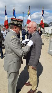 La remise de la croix du combattant, période Algérie, à monsieur Daniel CHERU et le salut des drapeaux
