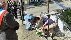 Le dépôt de gerbes par monsieur le maire et deux membres du conseil municipal des jeunes, par la présidente du comité d’Auray de l’ANACR et par notre président de comité SF