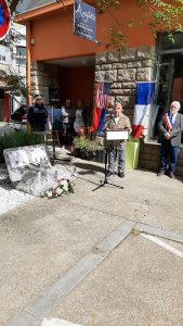 L’ensemble des participants se sont déplacés devant la Glacière pour la conclusion de la cérémonie. Madame le Sauce s’est exprimée au nom de l’ANACR, retrouvez le texte ci dessous.