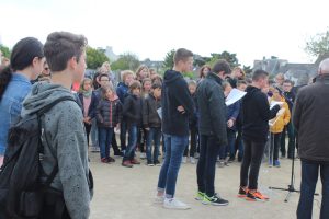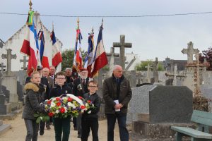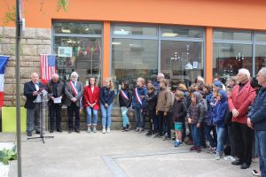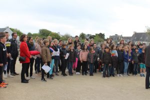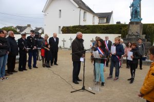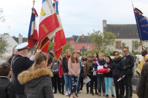 La classe de CM1 de M. Sophie LE PORT, ayant participé au concours scolaire du souvenir français, était présente. La cérémonie a été marquée également par la présence d’élèves du collège de la Rivière et de leurs homologues allemands en classe d’échange .