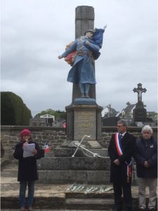 Au cours de la cérémonie M. Maryline le Sauce vice présidente départementale de l’association nationale des anciens combattants et amis de la résistance (ANACR) a rappelé les conditions de la déportation et s’est fait porte parole des souvenirs de Madame Simone VEIL. A l’évocation des noms des déportés des 3 communes revenus des camps, les enfants des conseils de jeunes ont déposés une rose au pied du monument.