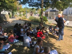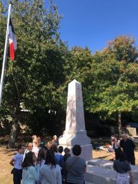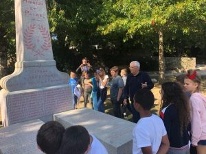 Au titre du devoir de mémoire les enfants sont également accueillis devant le monument aux morts. C’est le président de notre comité, M. Fourniol qui leur décrit le monument, son origine, sa vocation dont celle d’honorer la mémoire des morts pour la France des différents conflits et leur rappeler qu’il leur appartient de reprendre le flambeau.
