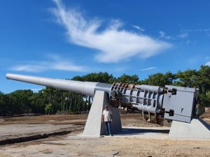Partenaire de notre comité, L’association « Liberty Breizh Mémory » a pu installé après 10 ans d’effort le canon de 340 sur le site du Bégo. Il est de retour sur le site ou il a servi pendant les deux Guerres mondiales sur la batterie de Plouharnel.