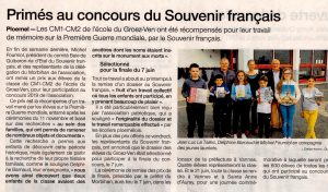 Le vendredi 10 mai, le comité à remis ses prix à la classe de CM1/CM2 de madame Delphine BARNAUD. Le concours scolaire organisé en partenariat avec l’office national des anciens combattants (ONAC) et en collaboration avec la direction des services départementaux de l’éducation nationale (DSDEN) avait pour thème « le monument aux morts de votre commune ».