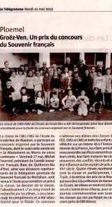 En présence de monsieur Jean-Luc Le TALLEC maire, de Monsieur Joseph LE MEUT 1er adjoint, de madame Christian TALBOOM 2e adjointe – Culture/Tourisme/Communication et délégué du souvenir français sur la commune, de monsieur Henri ROUSSEL président des médaillés militaires et de la section UNC, de madame Denise Drian contributrice au dossier, M. FOURNIOL président, accompagné par A. LE VAILLANT, M.C. CARLIER et Jo LE ROL, a remis les prix à la classe en soulignant l’implication particulièrement remarquable des enfants guidés par leur enseignante. Après la remise des prix les enfants ont partagé un goûter en clôture de ce moment.