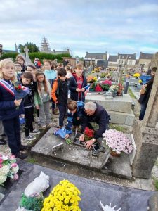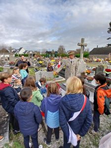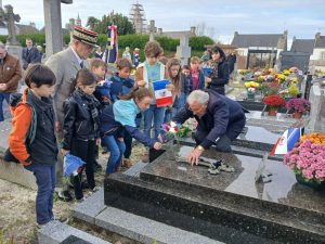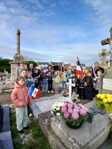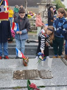 La cérémonie a été précédée par un dépôt d’un bouquet et d’un drapeau sur les tombes des morts pour la France par le conseil municipal des enfants récemment élus. La cérémonie ensuite s’est déroulée devant le monument aux morts déplacé en début d’année sur la place nouvellement baptisée Julien DREANO (FFI d’Erdeven, Mort pour la France). A cette occasion, Le poilu colorisé a repris sa place, action fiancée par le comité.