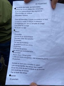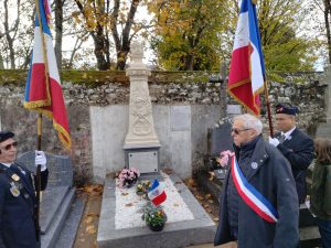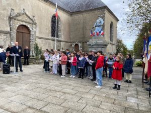 la cérémonie aux monuments aux morts a réuni en particulier les enfants des  deux écoles Primaires de la commune et qui ont chanté en chœur le chant  « ET POURTANT  » (Charles AZNAVOUR)