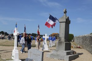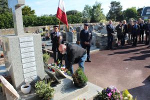 Le dépôt de gerbe devant le monument du souvenir français dans le cimetière par le président de l’UNC