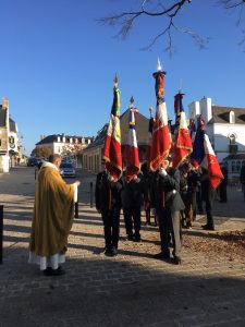 ![]() Les porte drapeaux réunis et l’accueil avant la messe commune |