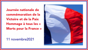 Journée nationale de commémoration de la Victoire et de la Paix Hommage à tous les « Morts pour la France » – 11 novembre 2021