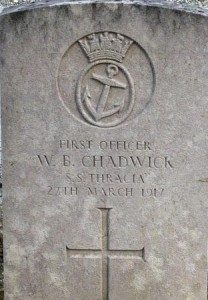 CHADWICK W B 27/03/1917 First Officer, en mer au large de Belle Île en Mer, membre de l’équipage du Steamer THRACIA coulé par le sous-marin allemand UC69