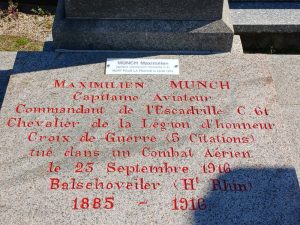 - Capitaine au service aéronautique détaché du 144e régiment d’infanterie, commandant de l’escadrille C 61, tué en combat aérien le 23 septembre 1916, abattu près de Balschoveiler (Haut- Rhin).