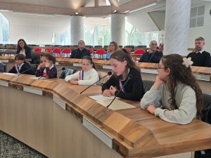Les représentants des deux CME dans la salle principale du conseil départemental |
